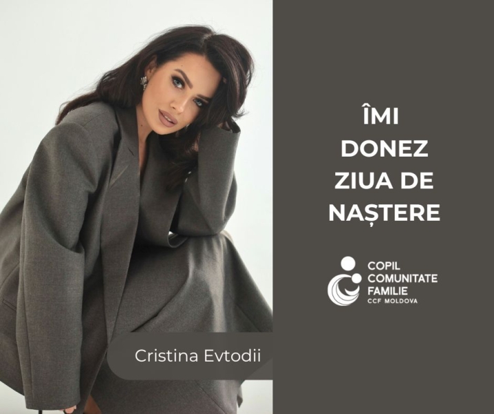 Pentru al doilea an consecutiv, Cristina Evtodii a decis să-și transforme ziua sa de naștere într-un gest de solidaritate. În locul tradiționalelor flori sau cadouri, ea își invită prietenii, colegii și pe toți cei care îi urmăresc activitatea să facă o donație pentru copiii aflați în risc de separare de familiile lor.