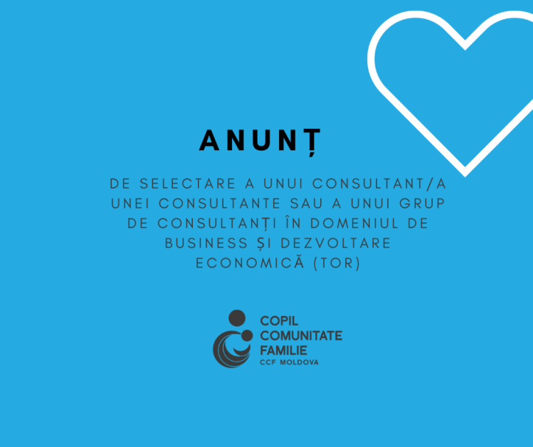 CCF Moldova solicită serviciile unui consultant/unei consultante/unei grup de consultanți cu experiență în domeniul dezvoltării afacerilor și activităților economice, care să poată oferi expertiză și suport pentru inițierea, dezvoltarea planurilor de afaceri și identificarea oportunităților economice pentru femeile refugiate din Ucraina și femeile din Republica Moldova.