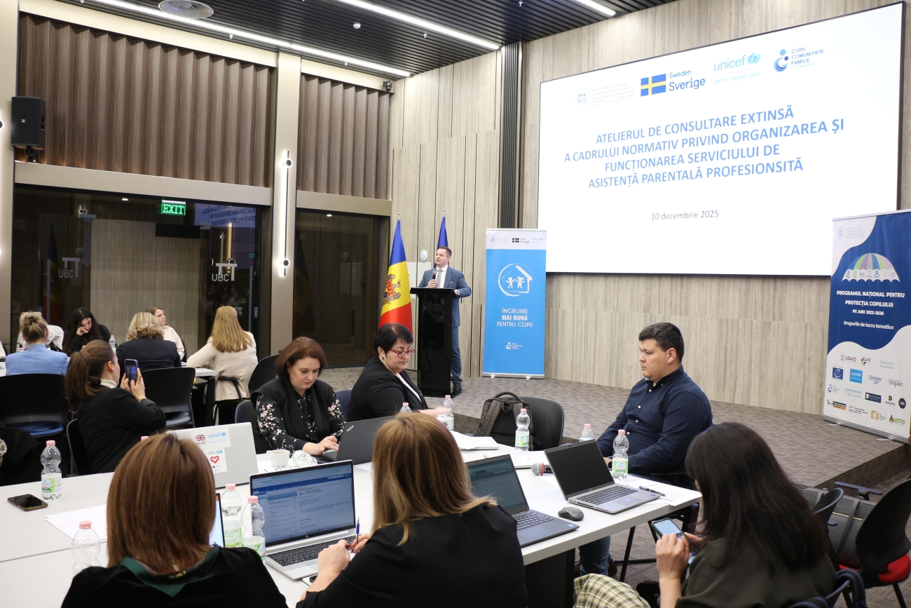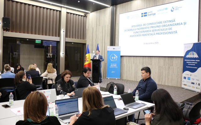 Peste 75 de profesioniști din domeniul protecției copilului și reprezentanți ai autorităților publice locale, au participat, pe 10 decembrie curent,  la Atelierul de Consultare Extinsă privind revizuirea și actualizarea cadrului normativ al Serviciului de Asistență Parentală Profesionistă (SAPP) - exercițiu participativ esențial pentru modernizarea sistemului de îngrijire de tip familial.