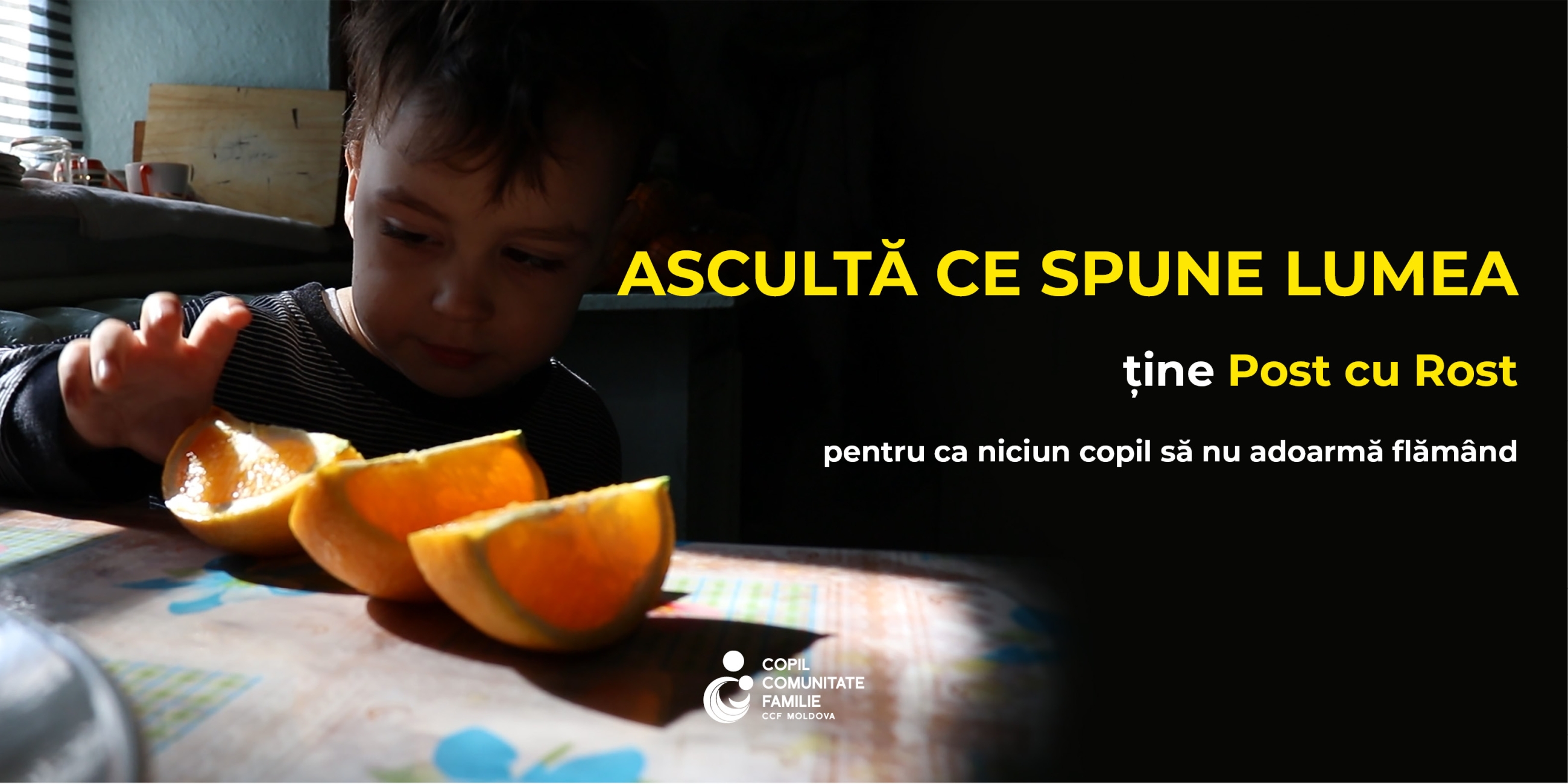 Pentru al 7-lea an consecutiv, CCF Moldova a invitat oamenii la fapte bune în preajma uneia dintre cele mai mari sărbători creștine – Paștele. Timp de 7 săptămâni, în fiecare zi, organizația a îndemnat oamenii la Fapte cu Rost, oferindu-le accesibilitate prin intermediul restaurantului virtual www.rostulpostului.md să-și împărtășească grija față de copii. Restaurantul este o platformă online, unde oricine poate selecta una sau mai multe mese la care ar pofti, dar în loc să le consume, donează contravaloarea acestora în sprijinul copiilor care se culcă flămânzi seară de seară. Cu banii colectați din aceste donații, echipa CCF Moldova susține familiile copiilor afectate de sărăcie extremă.