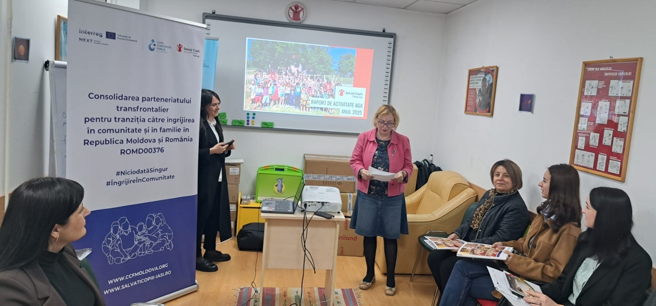 Proiectul transfrontalier „Consolidarea parteneriatului transfrontalier pentru tranziția către îngrijirea în comunitate și familie în Republica Moldova și România” (ROMD00376) este implementat de CCF Moldova și Salvați Copiii Iași, în parteneriat cu Ministerul Muncii, Protecției Sociale din Republica Moldova, cu finanțare prin Programul Interreg NEXT România–Republica Moldova 2021-2027.