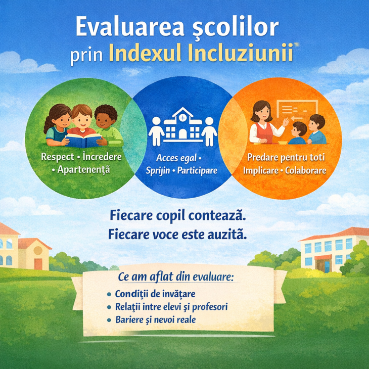 Procesul, bazat pe aplicarea Indexului Incluziunii - un ghid de autoevaluare și dezvoltare, a implicat direct elevi, părinți și cadre didactice și a oferit o imagine clară asupra realității din școli: cum se simt copiii, ce dificultăți întâmpină și ce anume îi împiedică să participe pe deplin la educație.